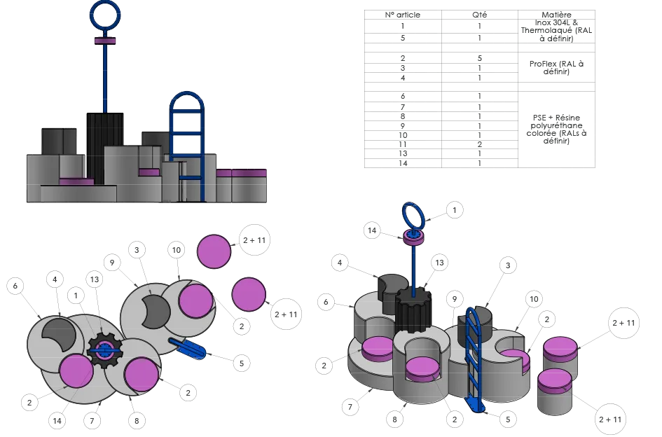 Ce projet, intitulé Seripous Gaem, se situe à la croisée entre sculpture urbaine et mobilier ludique. Sa conception, pensée pour différents scénarios d’appropriation, offre aux usagers la possibilité de s’asseoir, grimper, jouer ou se rassembler.