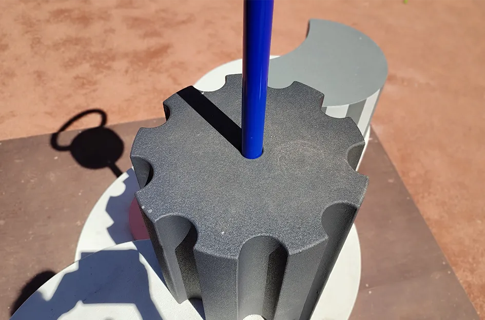 Fabriqué dans des matériaux durables et intégrant une esthétique forte, l’objet devient un support multifonction, adaptable à divers contextes urbains.