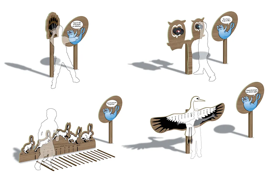 Les supports allient clarté des informations, attractivité visuelle et dimension ludique, grâce à des illustrations, jeux et anecdotes favorisant la découverte de la faune et la sensibilisation à la biodiversité.